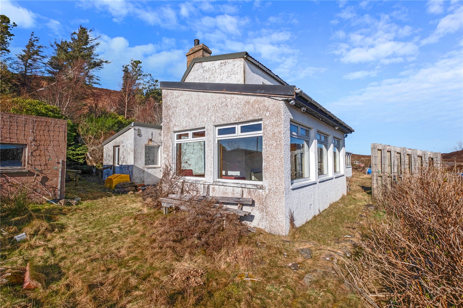 190 Dornie is a three-bedroom property with an adjacent one-bedroom annexe. The property offers the potential to generate income from the annexe, or could also be combined to create a spacious family home. The property is in need of upgrading and modernisation throughout. 190 Dornie has partial UPVC double glazing and has electric heating.