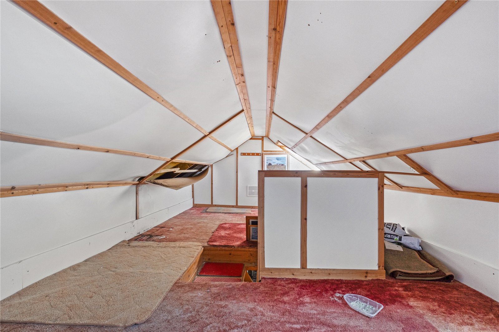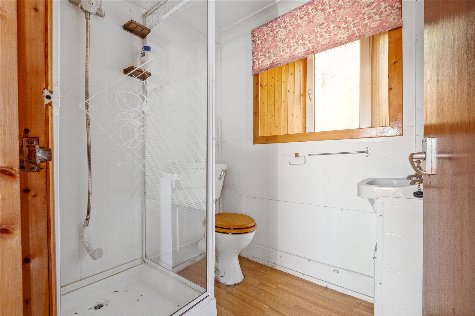 A door from the living room leads into a compact kitchen area, fitted with a small number of floor and wall units. It has dual aspect windows to the front and side and a door to the garden. Also accessed from the living room is a shower room comprising WC, wash hand basin and shower cubicle. A wooden staircase rises to the attic, which has a generous floored area with Velux windows.