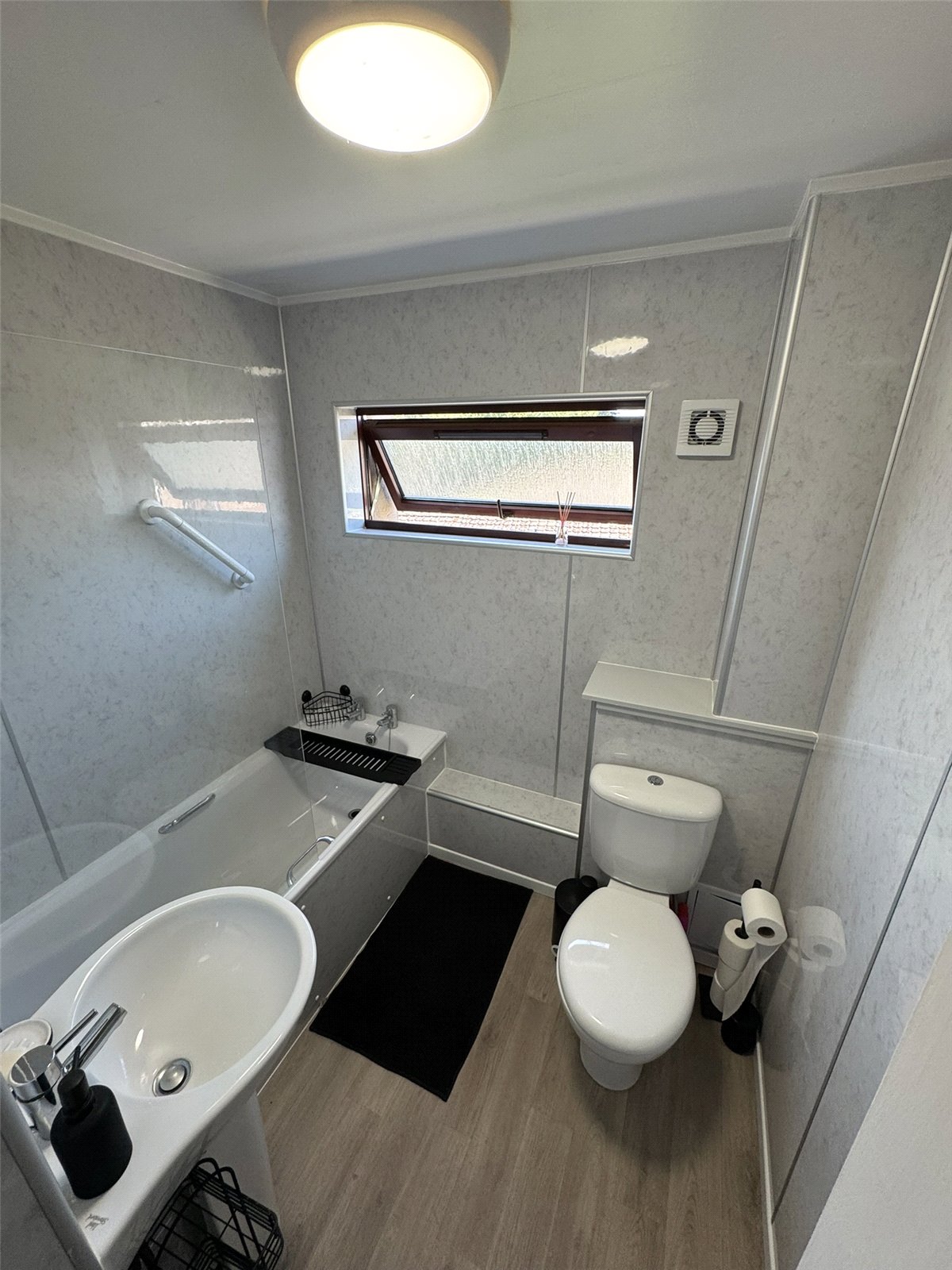 The property is accessed from a communal front door. From here stairs continue up to the second floor. A wooden door opens to a hallway with utility cupboard. The living room faces the front of the property. The fully fitted kitchen has tiled spashbacks, fitted wall and floor units, sink, gas hob, electric oven with extractor. There is space for a washing machine, fridge freezer and it is vented for a tumble dryer. The bathroom has wet walling, a bath with shower over, washbasin and WC. To the rear is a bedroom with fitted wardrobes. Outside the access door is a large storage cupboard.