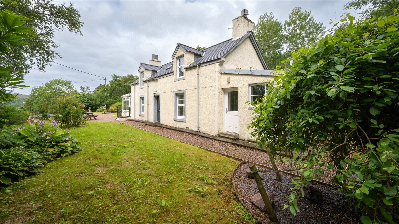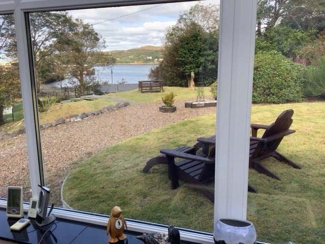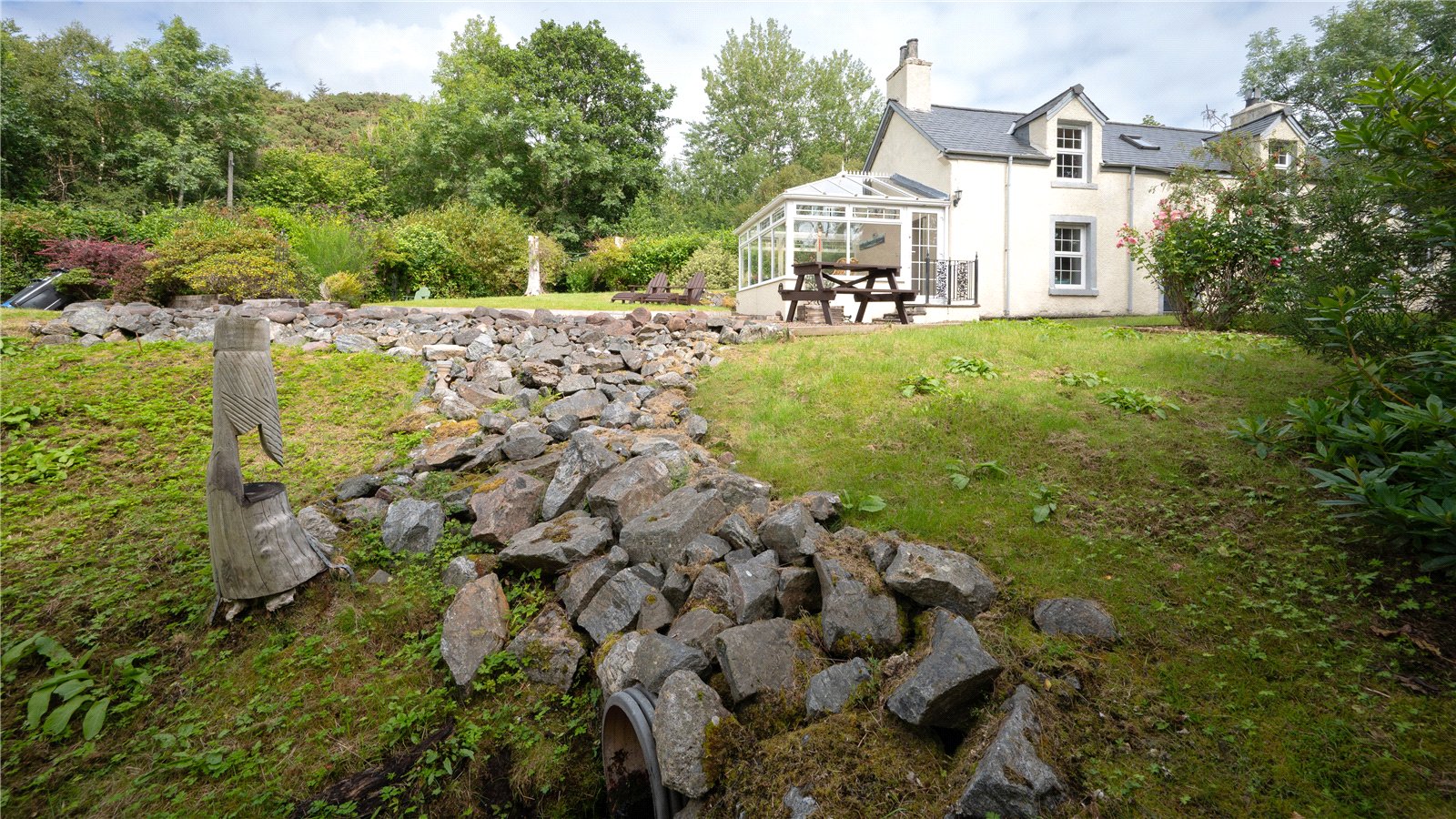 The gardens are mainly laid to lawn and planted with mature trees and bushes which is bounded by stock fencing. There is a lovely burn which trickles through the garden and there are plenty of seating areas to enjoy the lovely views to the sea. The rear of the garden has mature bushes and trees creating a screening which offers a great amount of privacy.