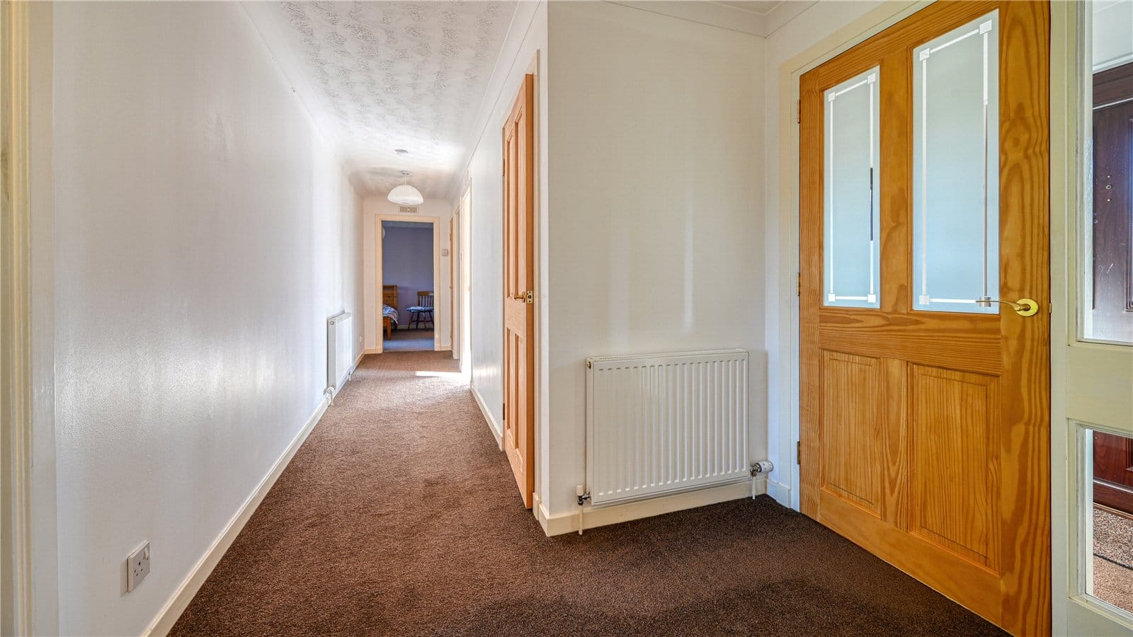 From the driveway, steps lead to a UPVC door to the entrance porch which has a built-in coat cupboard.