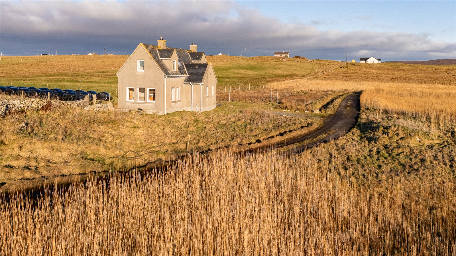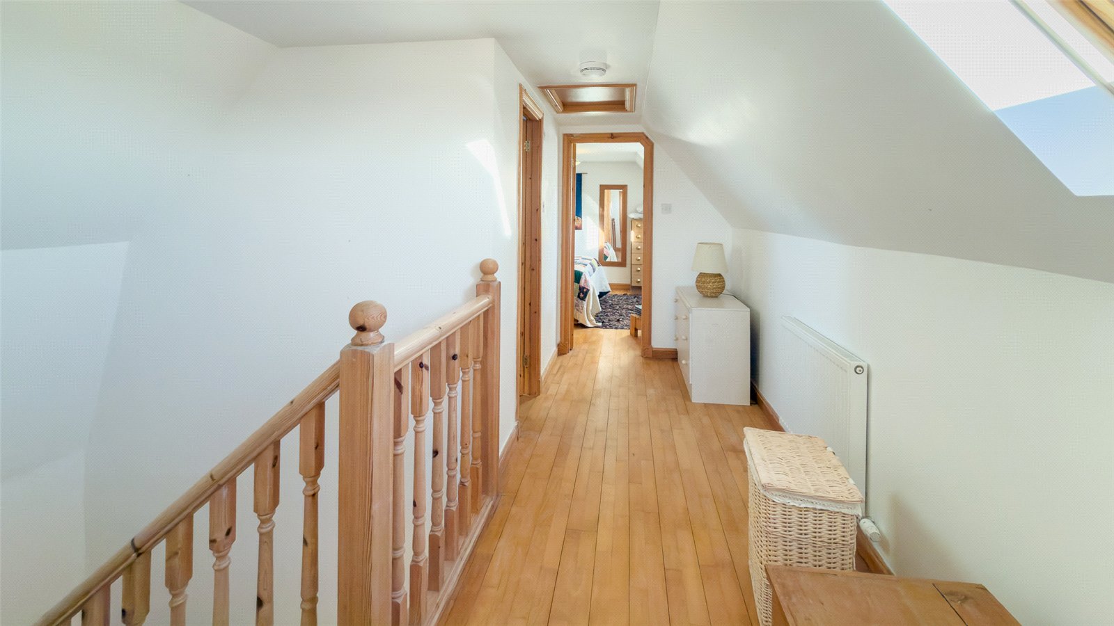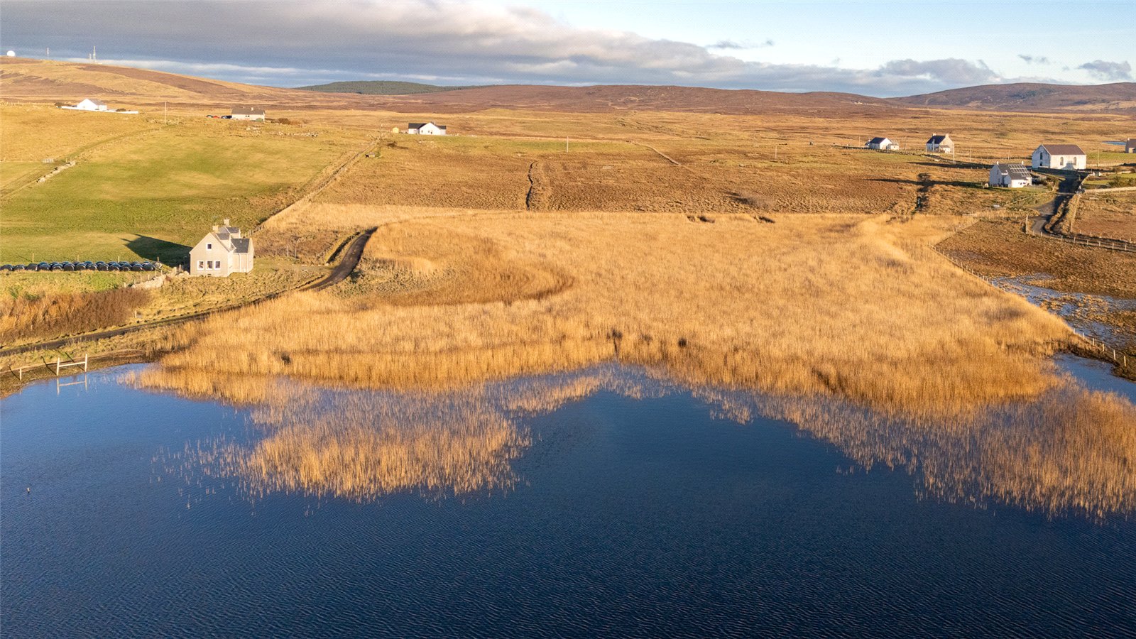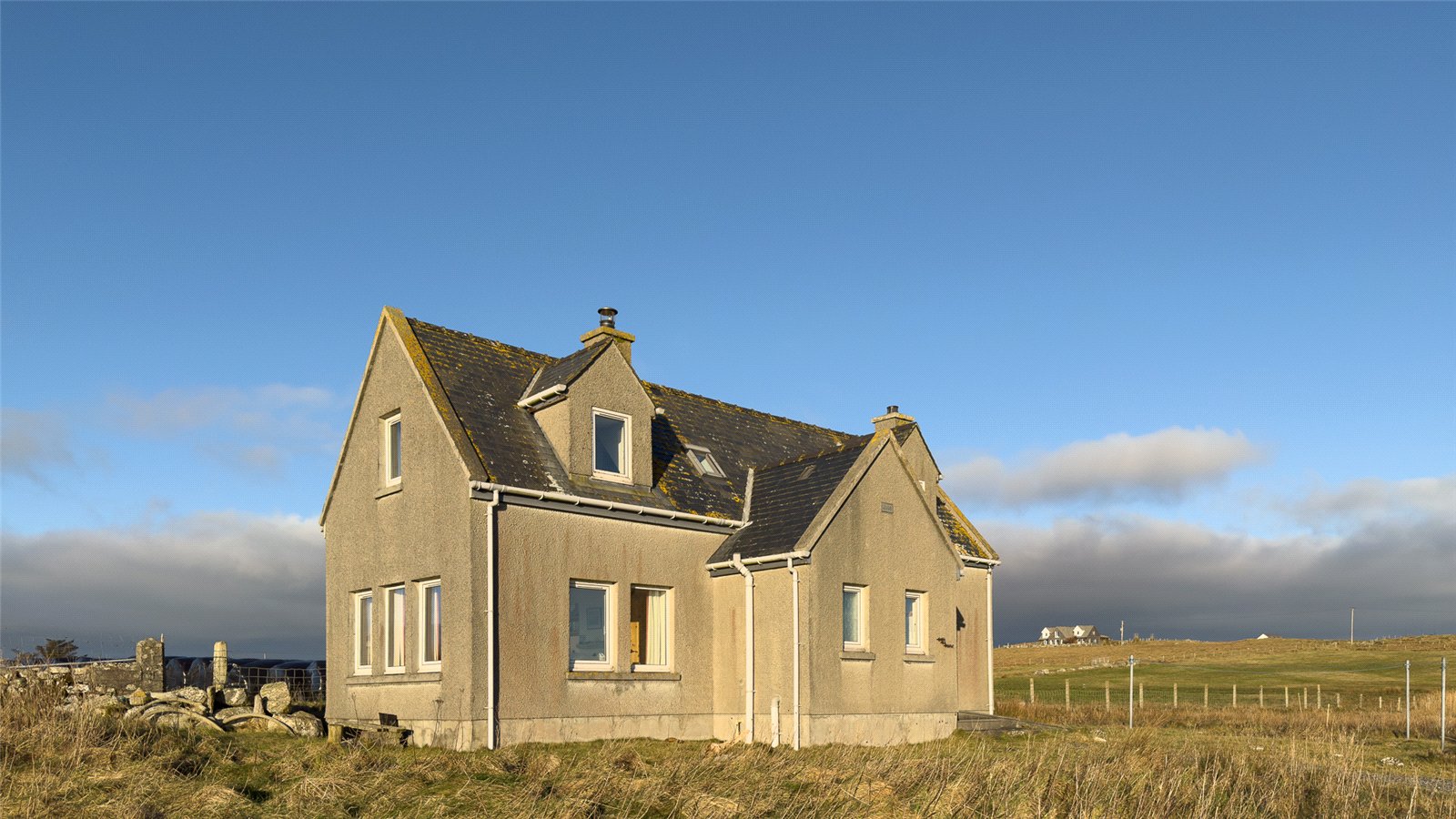 Stairs lead to the first floor, where there are two double bedrooms. Bedroom one has dual-aspect windows to the front and side with far-reaching views over the loch and surrounding countryside. Bedroom two has a front-facing window with rural views.