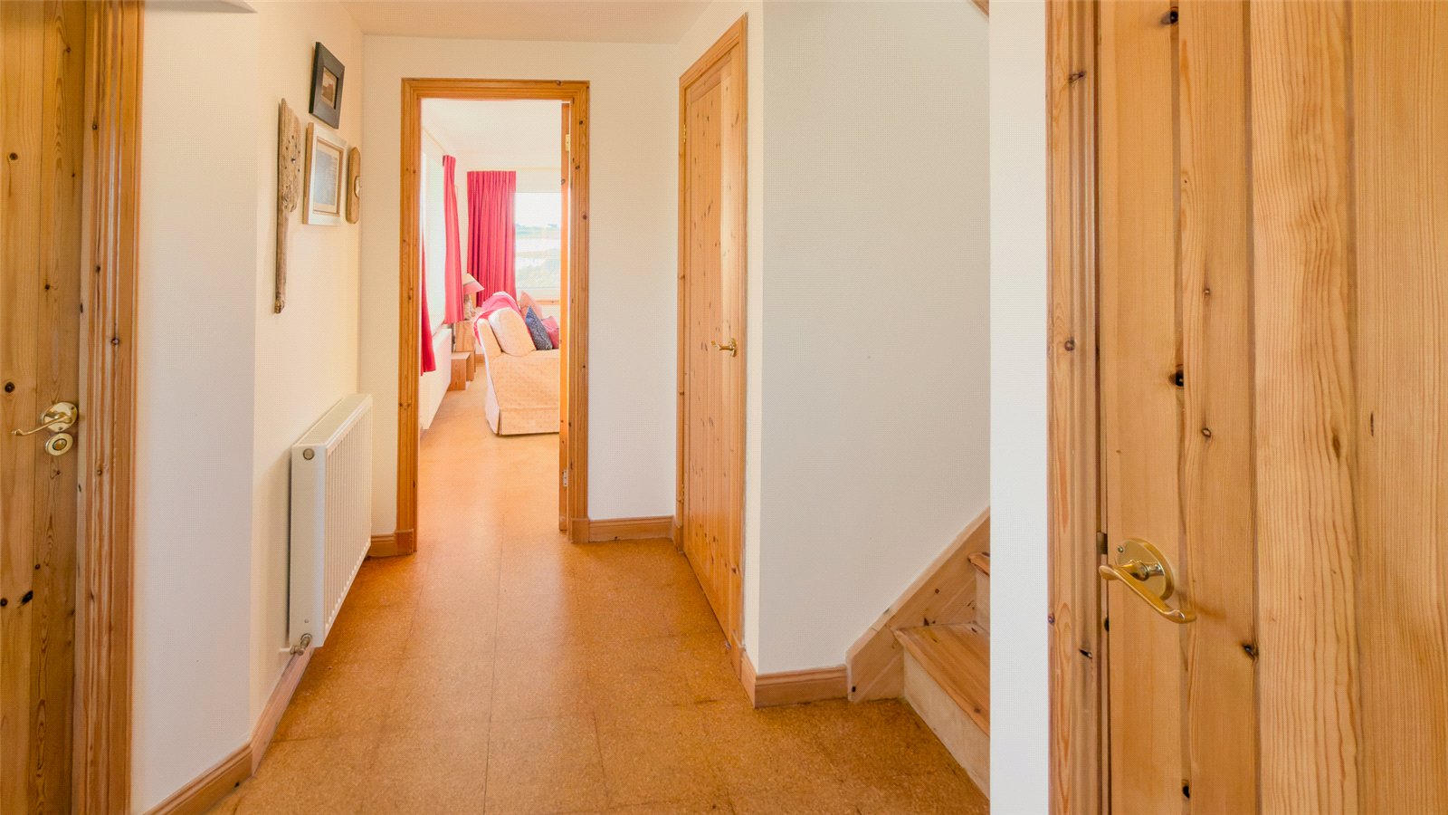 Tigh Na Cuilc is approached via a concrete ramp and steps to a composite front door which opens to an entrance hall which includes two large under-stairs storage cupboards.