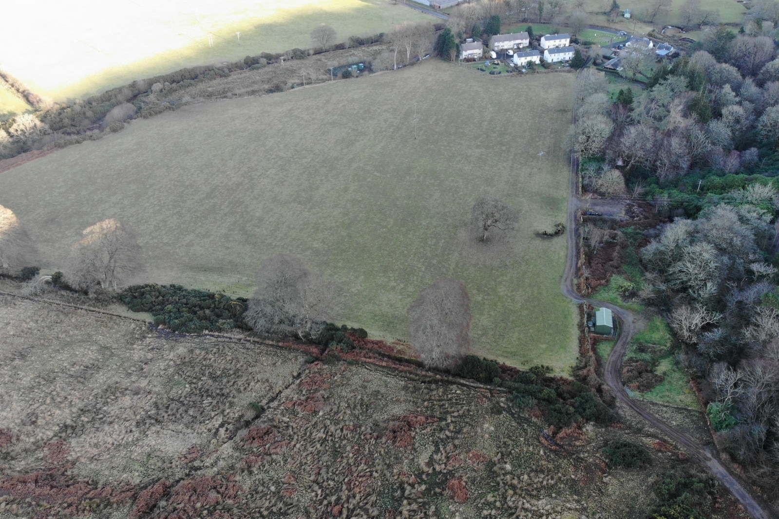 The land extend to about 60 hectares (148.26 acres) and comprises grazing land on an easterly facing slope and 1.9 hectares of native woodland in the north of the site. The land is surrounded to the north, west and south by commercial forestry plantations and rises from 120m to approximately 250m above sea level.