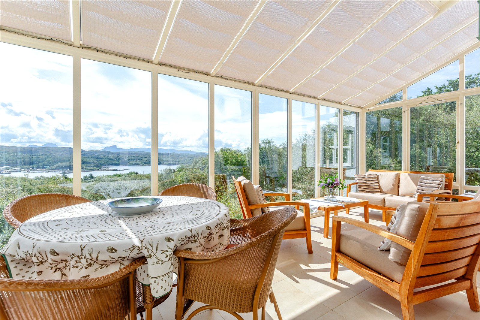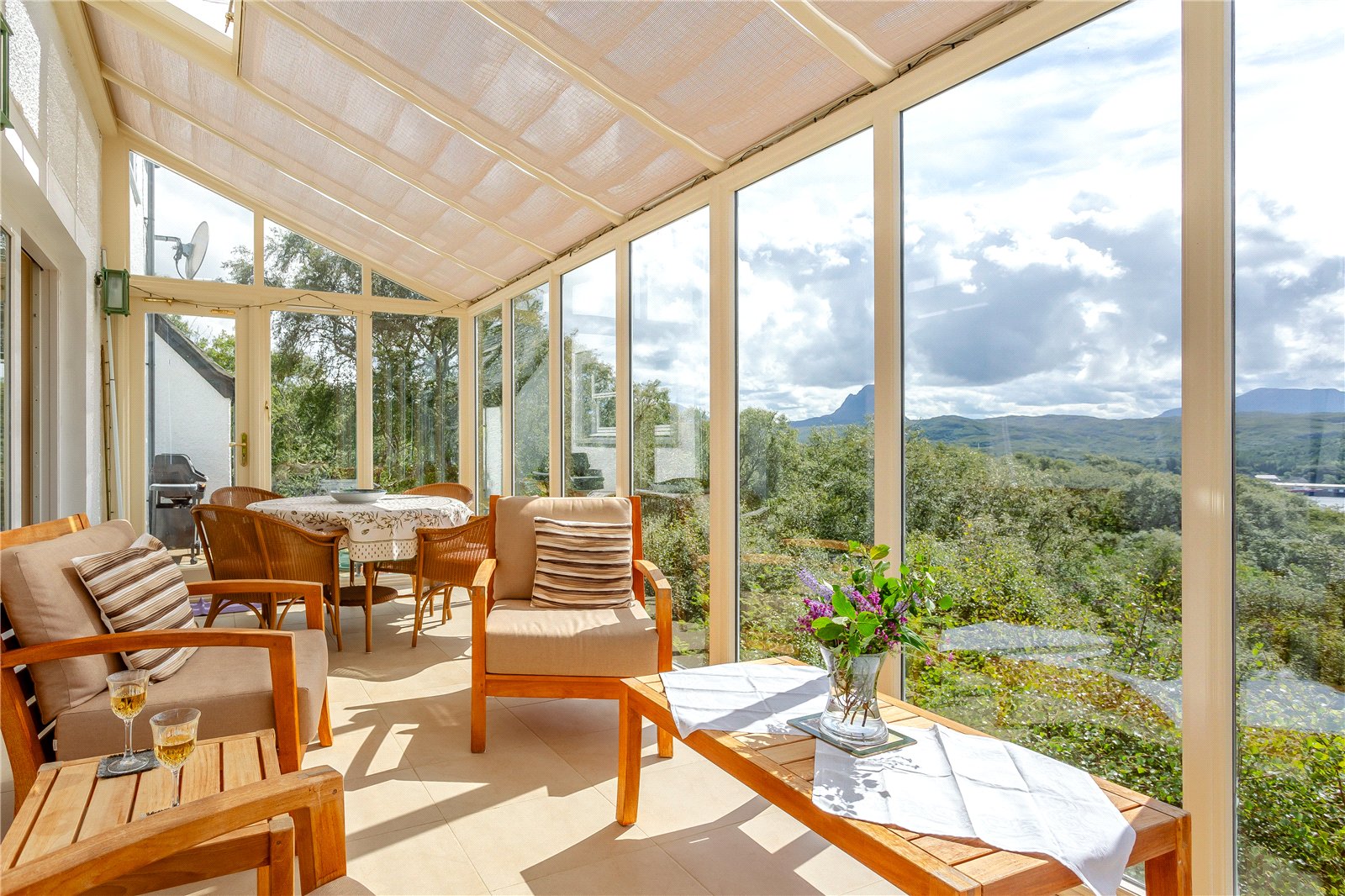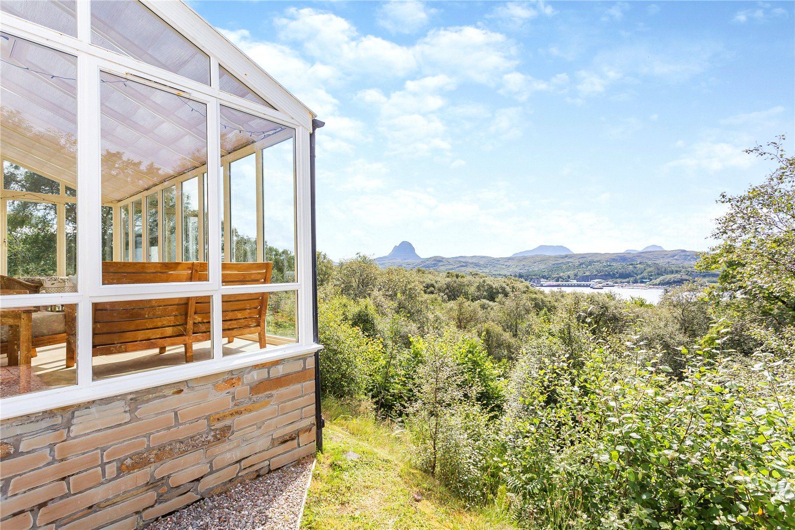 Cnoc Na Doire is an extremely well-presented, spacious four-bedroom property in an enviable private location with outstanding views over the sea to the Assynt Mountains. The property is orientated to make the most of the outstanding scenery with panoramic views from all living areas and bedrooms. The property has quality fixtures and fittings throughout, is fully double glazed and has oil fired central heating.
