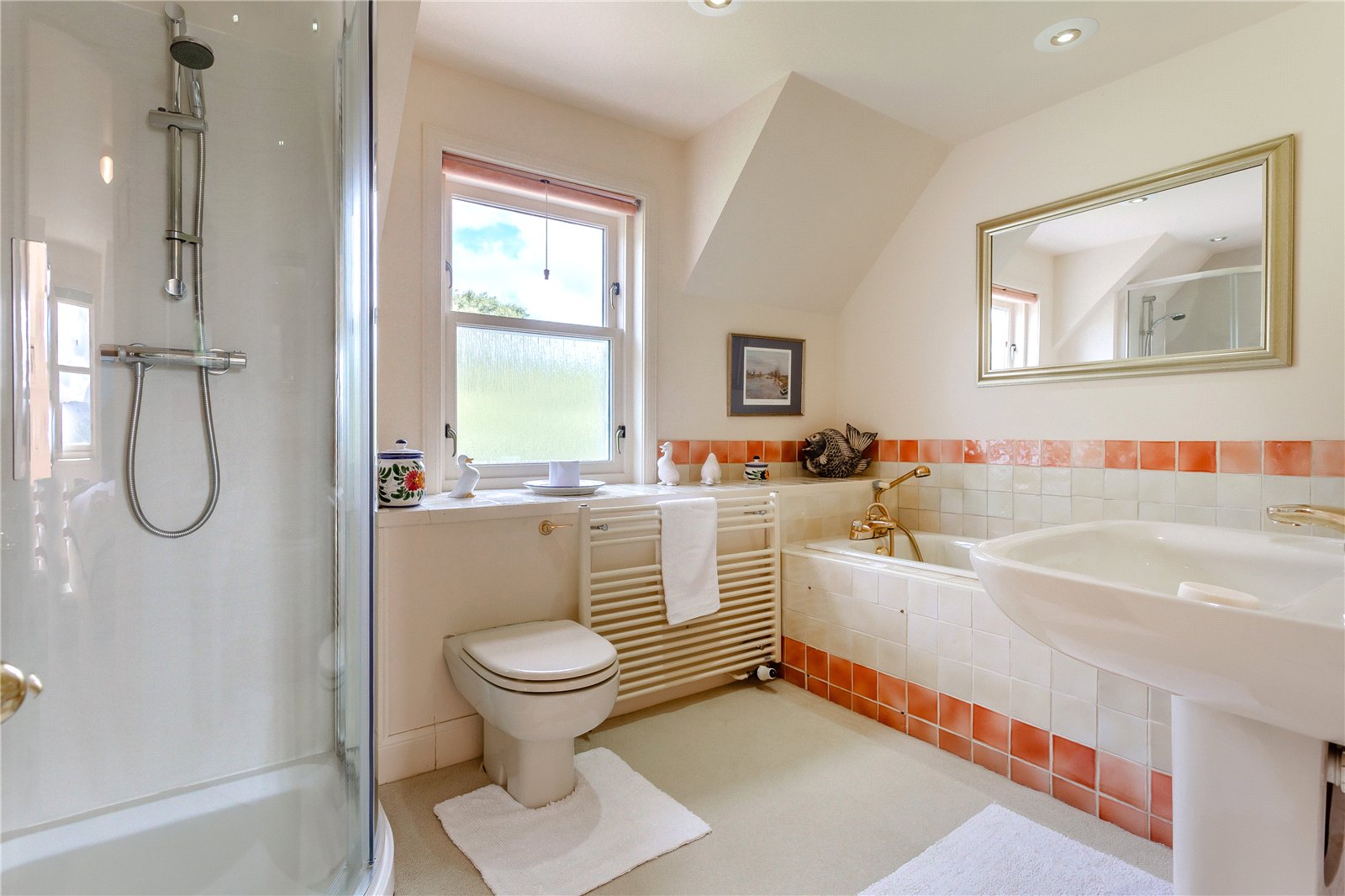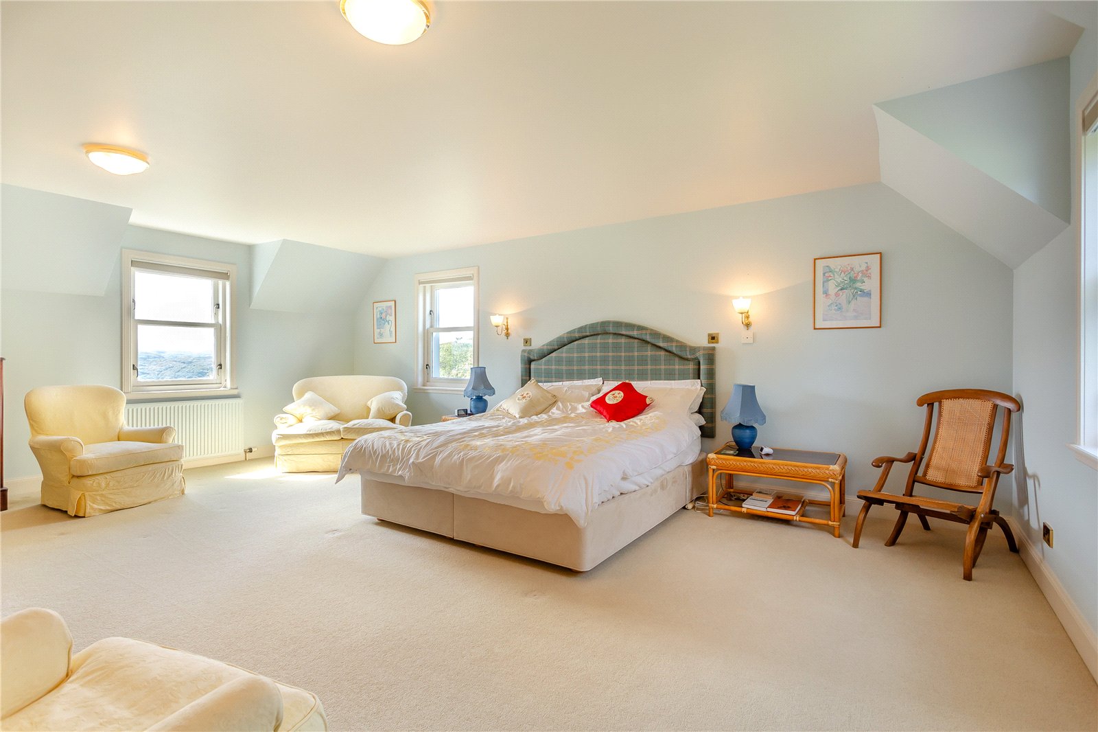Bedroom three is a double room with built-in wardrobe and window to the front enjoying the views. Bedroom two is also a double room with built-in wardrobe and similar outlook. A door opens to a Jack and Jill bathroom, fitted with bath, separate shower, WC and wash hand basin. A door leads back to the landing.