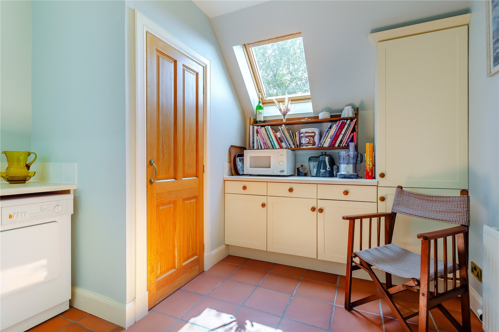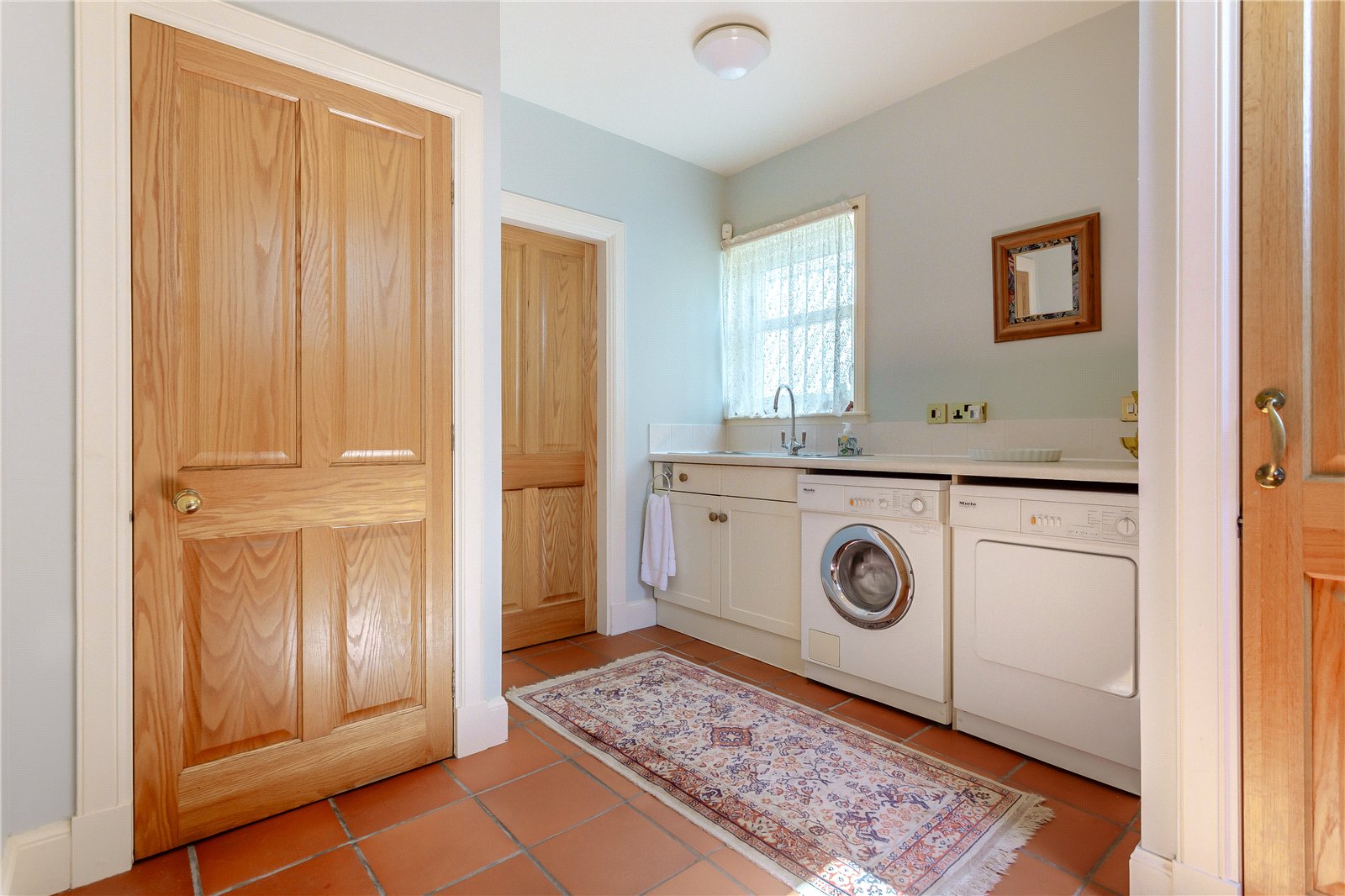A door leads to the utility room, which has a walk-in pantry, further storage cupboard, washing machine, tumble dryer and additional units. Quarry tiled flooring continues through to the adjoining boot room, which has further storage, shelving and coat hanging, with doors opening to the garden. A hatch from the boot room gives access to the loft.