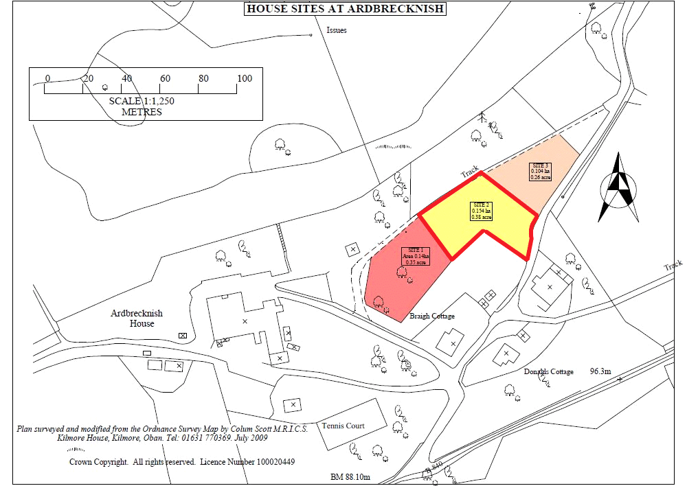 After approximately 2 miles turn right into the settlement of Ardbrecknish, signposted Ardbrecknish House and continue over the small cross roads turning right at the next junction down a single track road. At the junction turn right onto the single track road. The plots are located on the right hand side and are clearly marked.