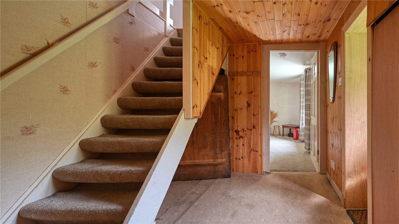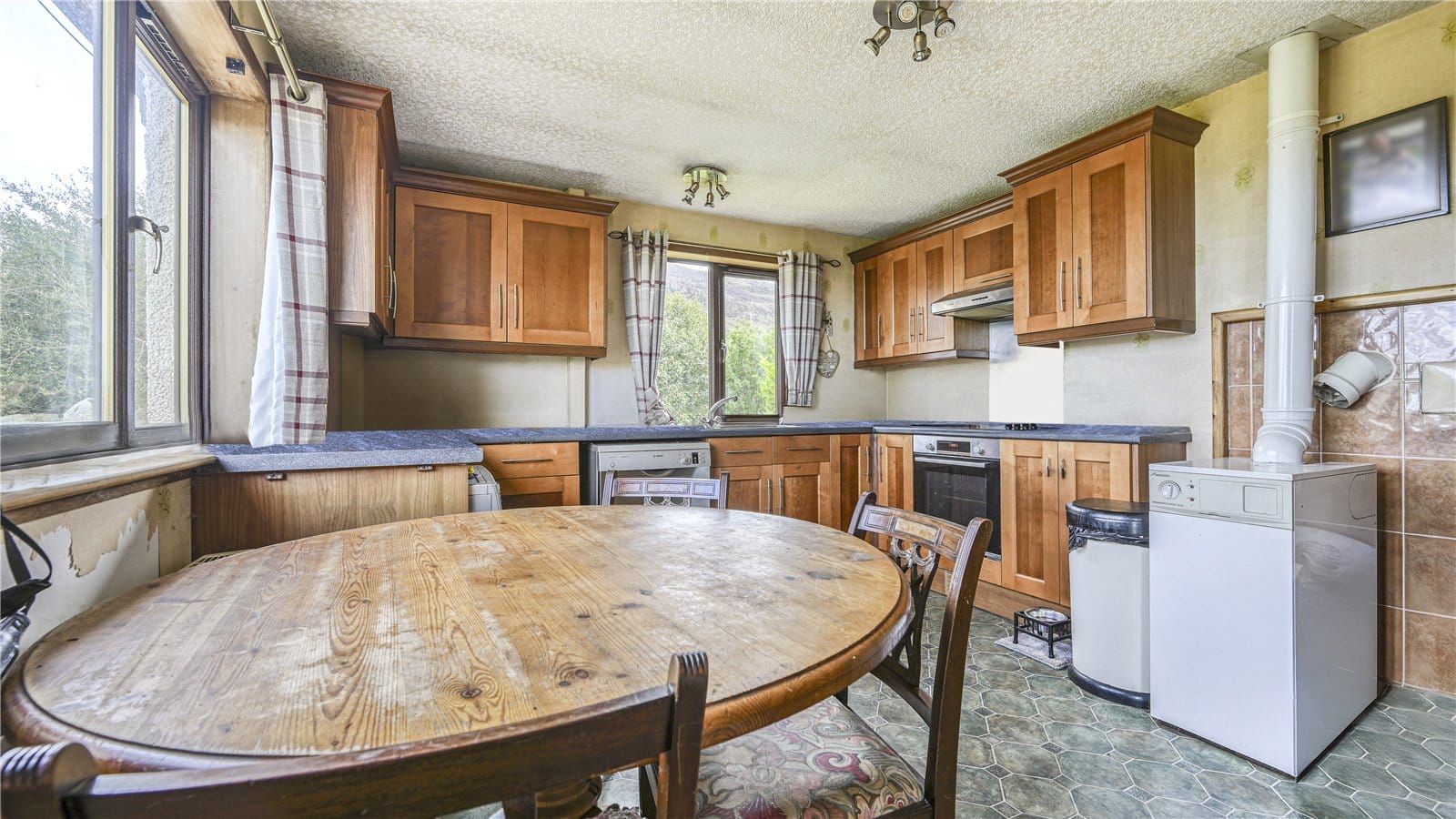 The former croft house has UPVC double glazing and wood panelling features throughout.