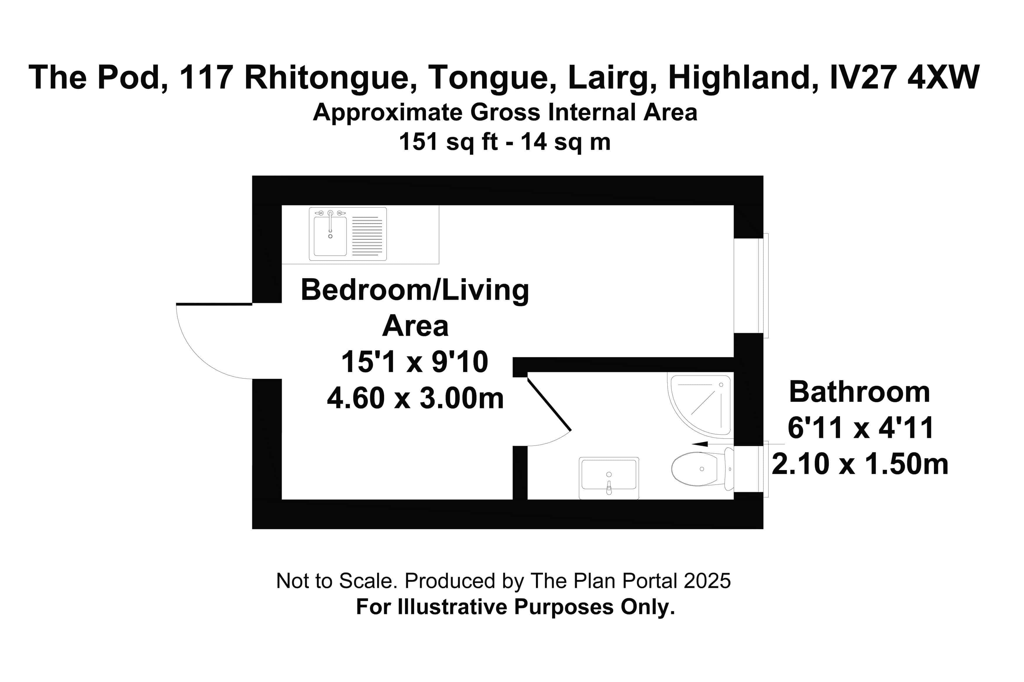 The modern Pod has an open plan kitchen/living/bedroom area. The kitchen has storage units and fridge, microwave and sink. There is a sofa bed and double bed.