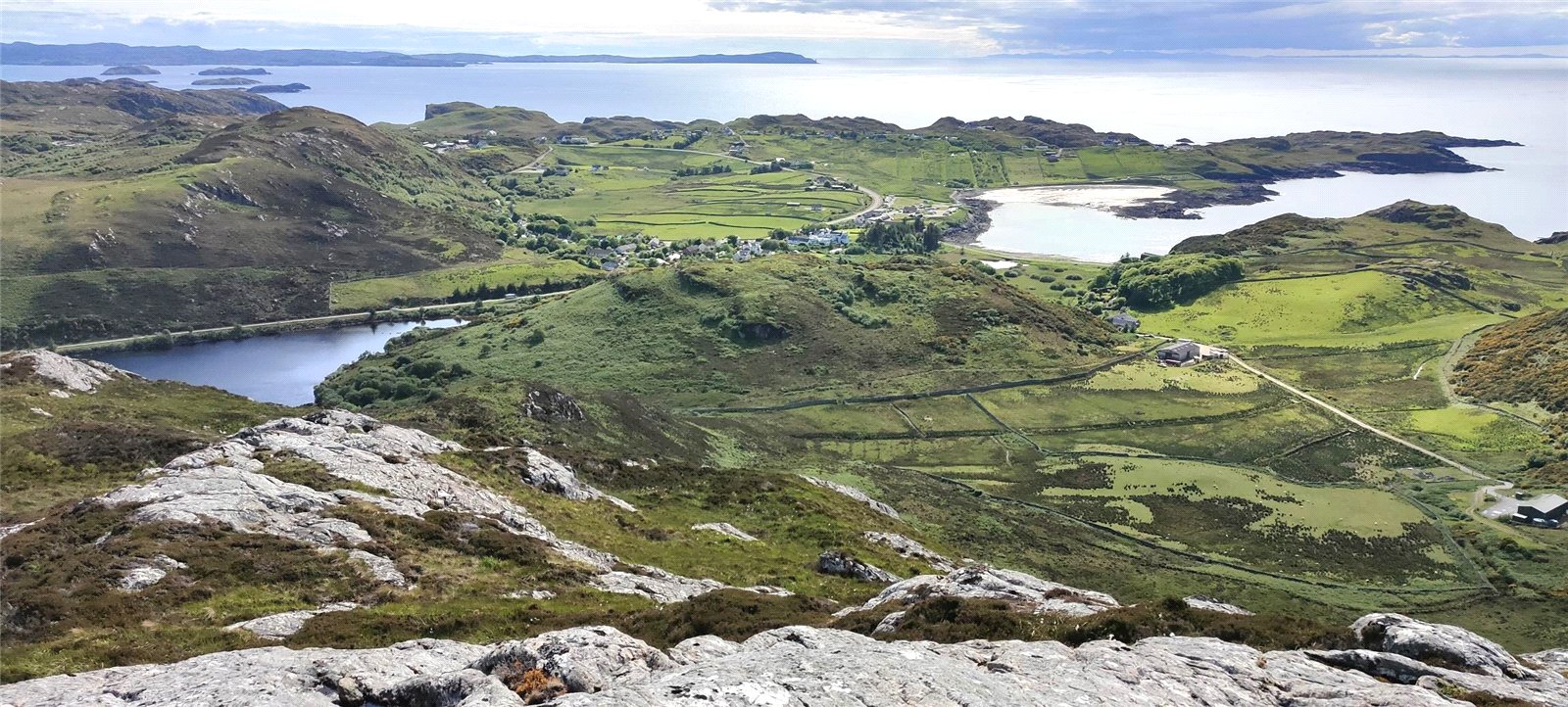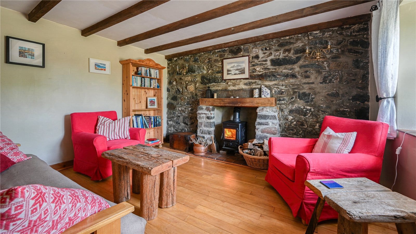 Cnocbhuan House is accessed by a hardwood door to the entrance hall which has a tiled floor. To the right of the hall is the living room which has a reclaimed solid maple wooden floor and features the original stone wall in the centre of which sits a Morso wood-burning stove on a quarry tiled hearth with stone surround and wooden mantle. A window to the front overlooks the garden.