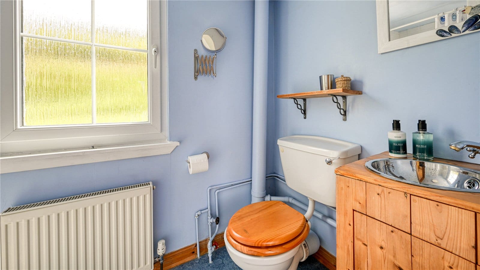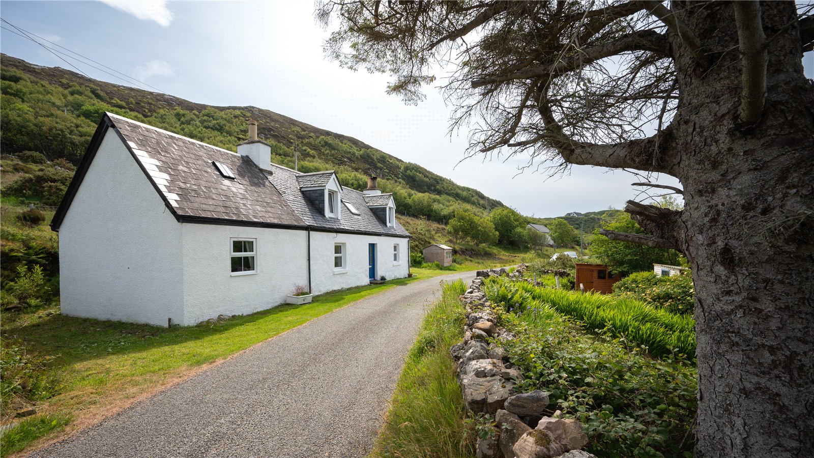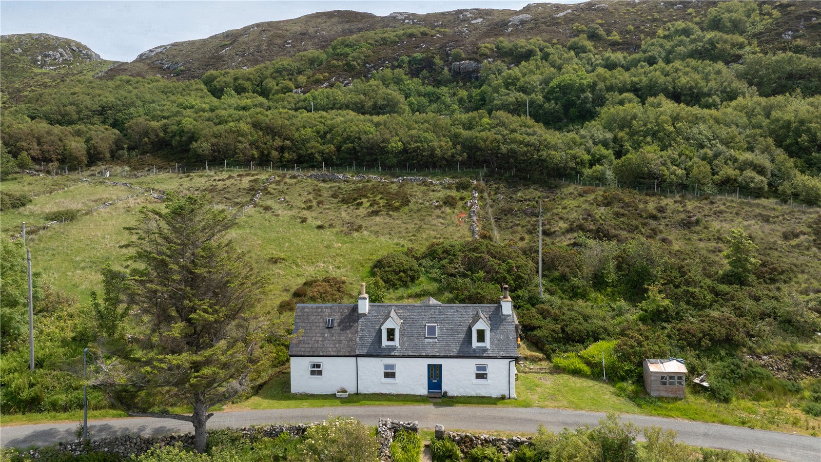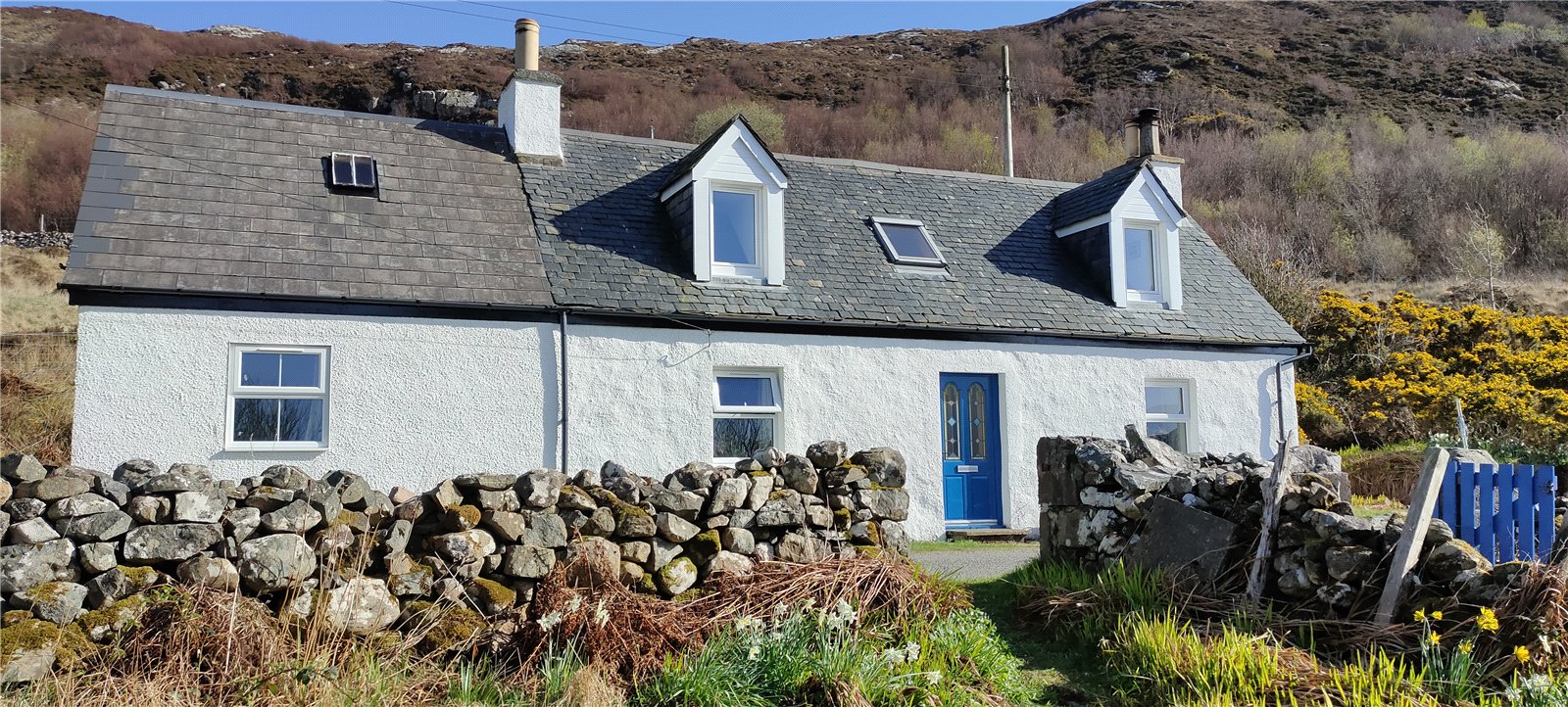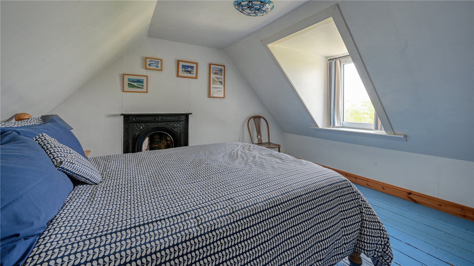 Returning to the hall and a wooden staircase rises to the upper floor landing where there are two double bedrooms and the shower room. Bedroom two has painted wooden floorboards and the original cast-iron fireplace. There is a window to the front enjoying views over surrounding croft-land and mountains. Bedroom three, again, has painted wooden floorboards and a window to the front.